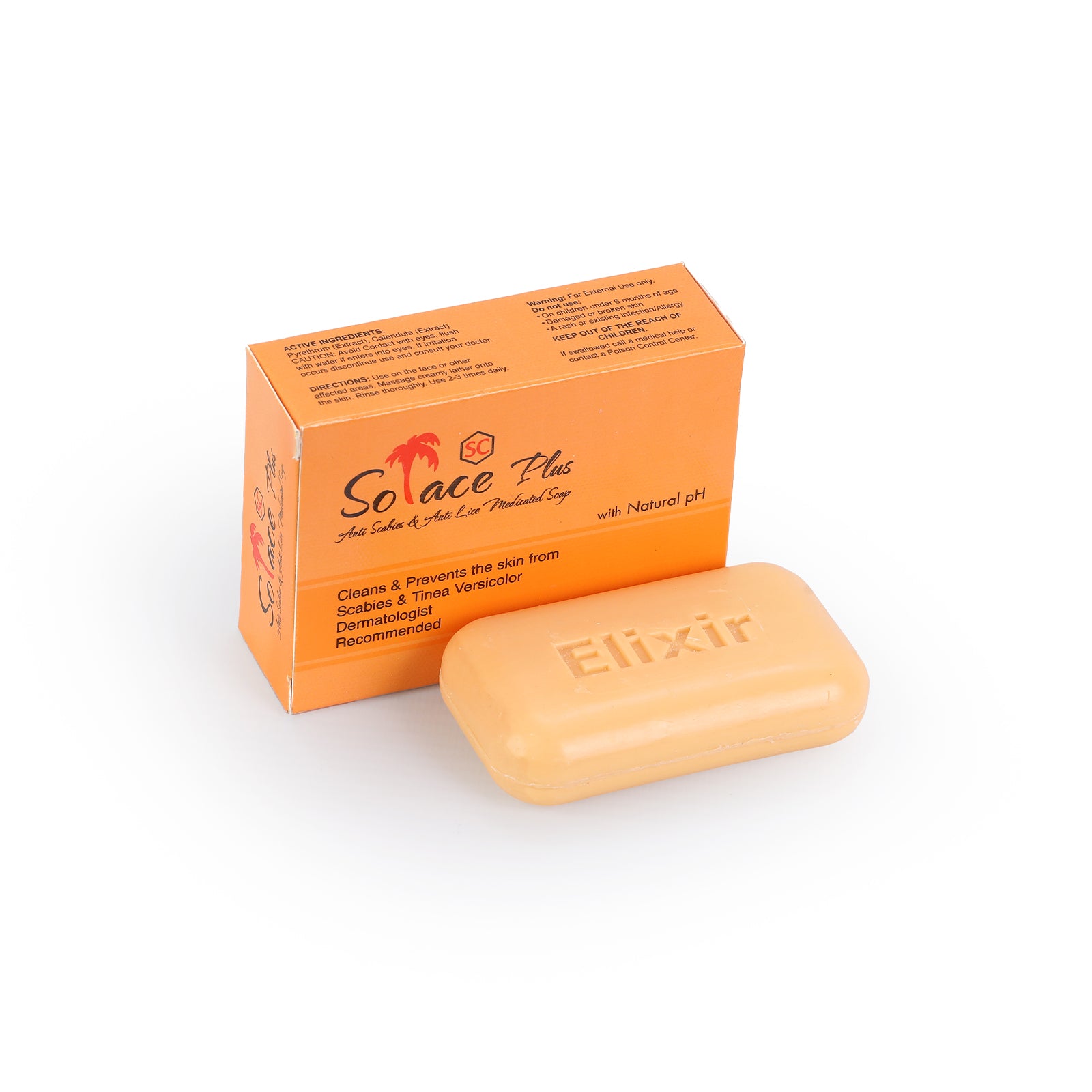 Solace Plus Medicated Soap is a dermatologist-recommended solution designed to cleanse, protect, and heal irritated skin. Available at Elixir Esthetic, this powerful medicated soap is enriched with Pyrethrum Extract and Calendula to target scabies, lice, and tinea versicolor, providing relief from itching and discomfort. Formulated with gentle yet effective natural ingredients, Solace Plus eliminates parasites while calming inflammation. Ideal for daily use, it restores skin health and leaves your skin feeling fresh, clean, and itch-free.